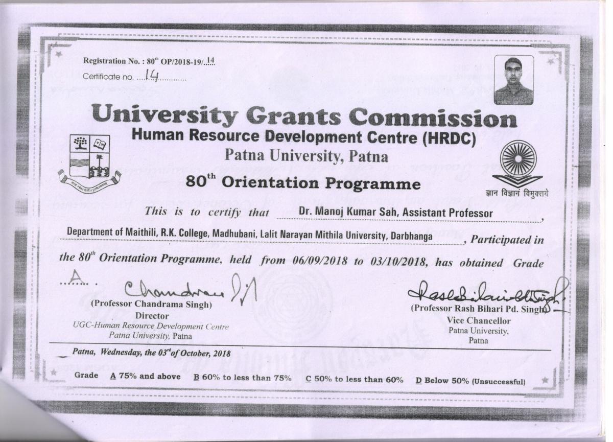 Letter for B.Ed. Course (Govt. of Bihar)