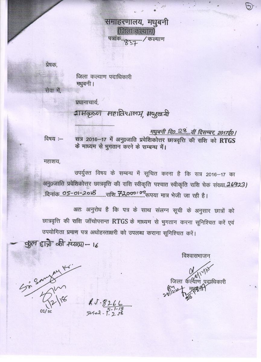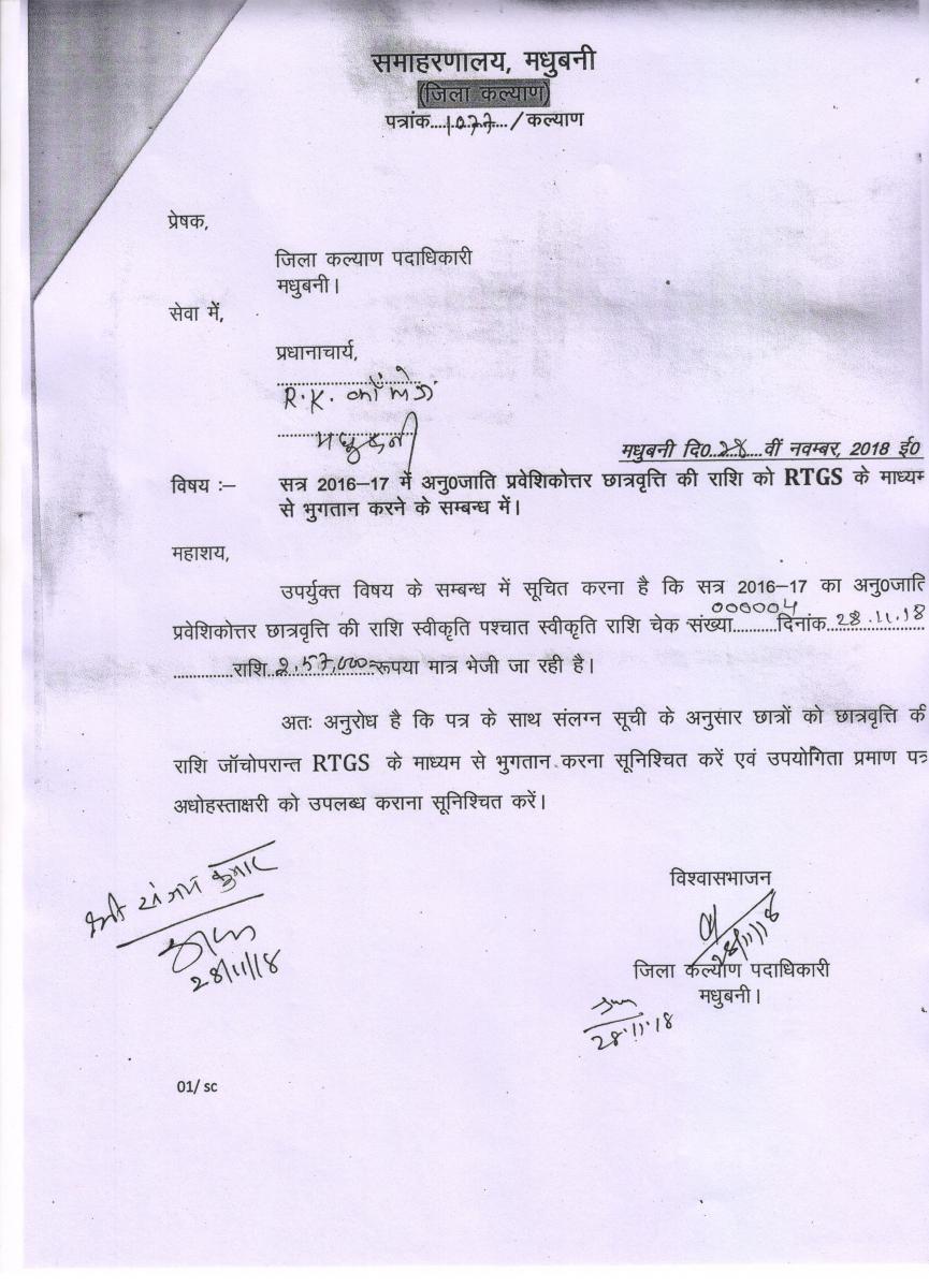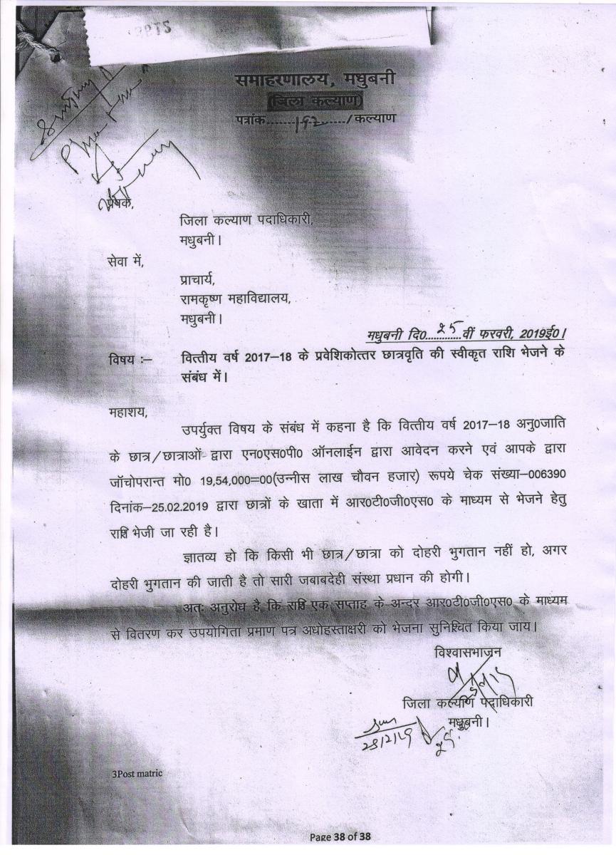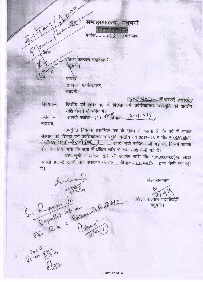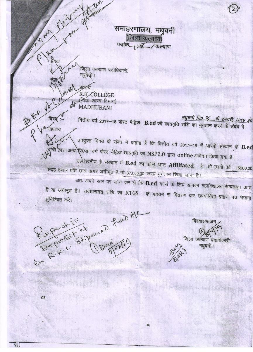 Letter for B.Ed. Course (Govt. of Bihar)